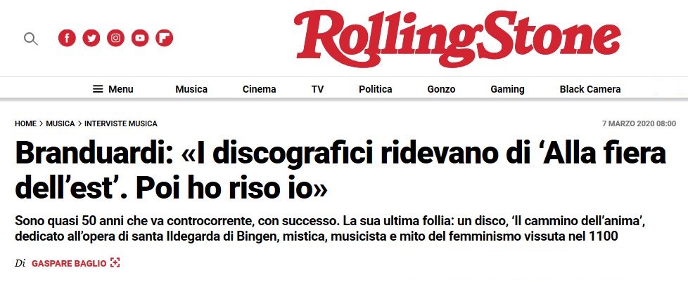 Wenn er sich umschaut, weiss Branduardi, dass er in der italienischen Szene (und darüber hinaus) einzigartig geblieben ist. Zu den Künstlern von heute sagt er erst "no comment", dann lässt er sich gehen. Heute "gibt es viel, zu viel Musik", antwortet er. Es gibt auch eine für andere, etwas kultiviertere Menschen, die bestimmte frauenfeindliche und homophobe Texte aus der Produktion dieser Zeit nicht ertragen können. Ich habe, wie andere in meinem Alter, ein transversales Publikum, auch junge Leute. Natürlich nicht die der Falle". Kurz gesagt, es gebe nicht nur Lieder "für Kinder", fügt er hinzu, "sondern viele davon haben einen offensichtlichen Erfolg. Ich weiss nicht warum, vielleicht wegen der familiären Bildung, der kulturellen Bildung. Mal sehen, wie lange es anhält."
